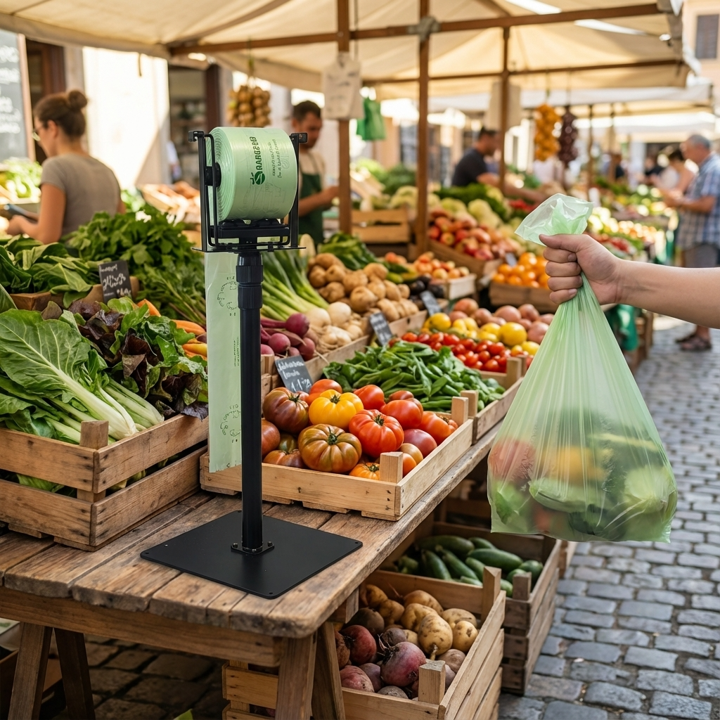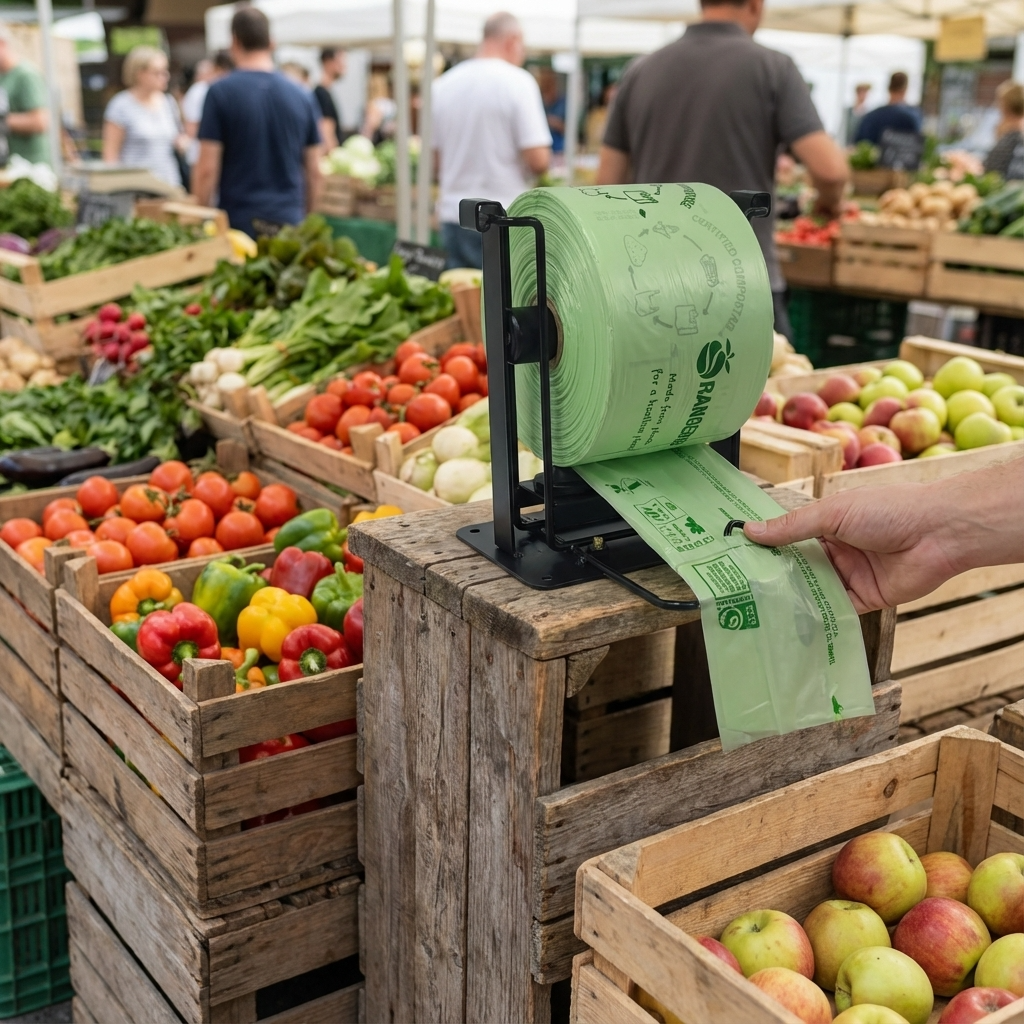 - Compatible with compostable, biodegradable, and conventional produce bags